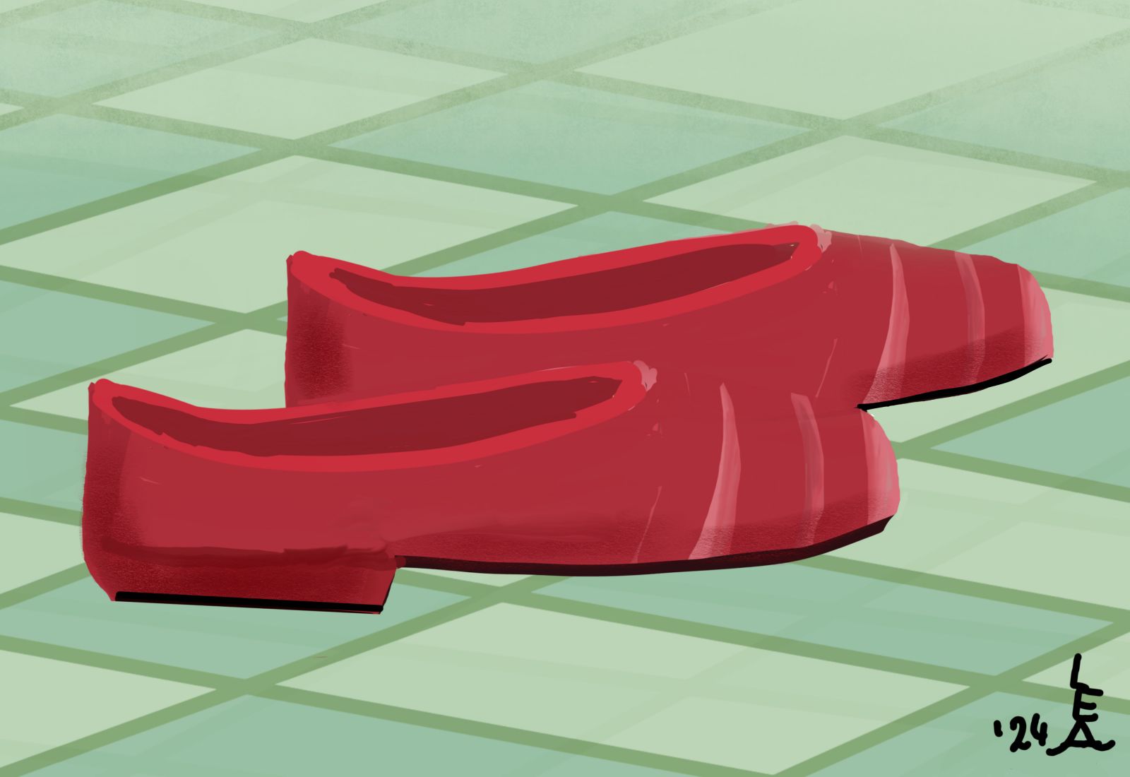 Even probeert haar moeder haar nog te overtuigen. Dat dit soort schoenen wel erg snel versleten zullen zijn; dat je koude voeten zult krijgen; dat je ze niet in de regen en zeker niet in de winter kan dragen. Wendy luistert al niet meer. Verliefd kijkt ze naar de rode schoenen aan haar voeten. Deze en geen andere.